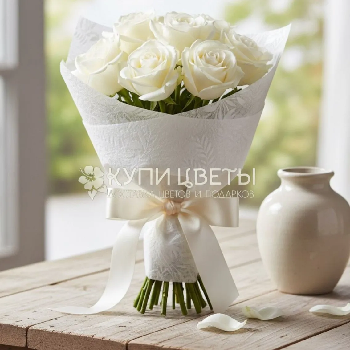 Нежное послание любви: 7 белых роз в шикарной упаковке