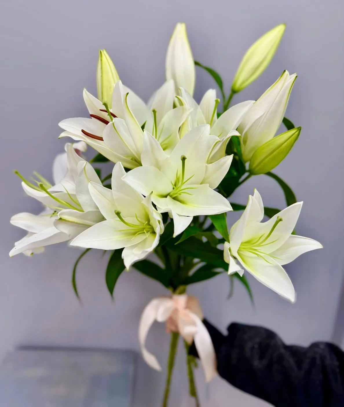 Букет из белых лилий под ленту