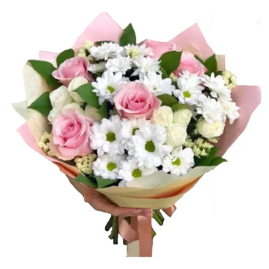 Букет из розовых роз и хризантем Очаровательный