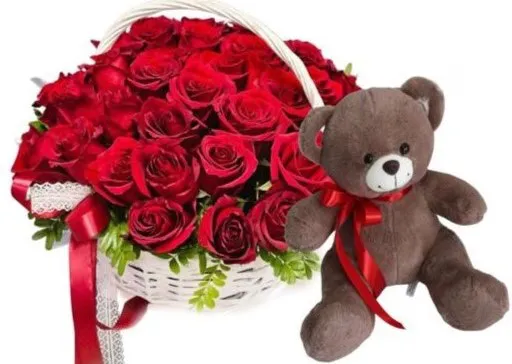 Подберите такую корзину для своей близкой души, и пусть этот жест станет началом новых светлых мгновений в вашей жизни! Порадуйте своего любимого человека красными розами и мягкой игрушкой — подарите ему кусочек счастья и любви!