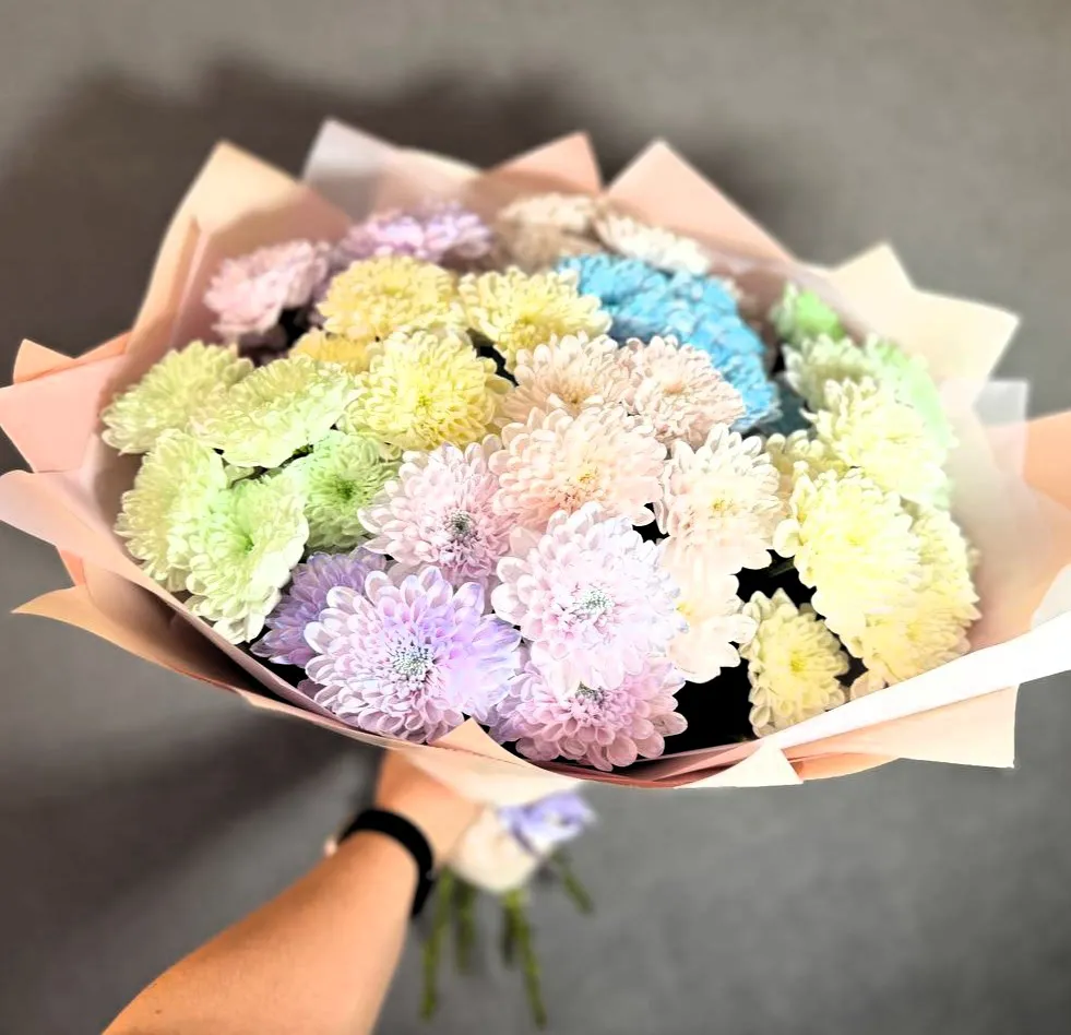 Каждый букет из кустовых хризантем – это не только набор цветов, но и настоящее произведение искусства. Разноцветные кустовые хризантемы, напоминающие солнечные поля, способны преобразить любое пространство и добавить в него атмосферу радости и уюта. Их разнообразие оттенков – от нежного пастельного до яркого насыщенного – позволяет создавать уникальные композиции, которые подойдут для любого повода.