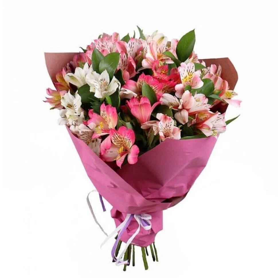 Состав букета: альстромерии, упаковка,лента