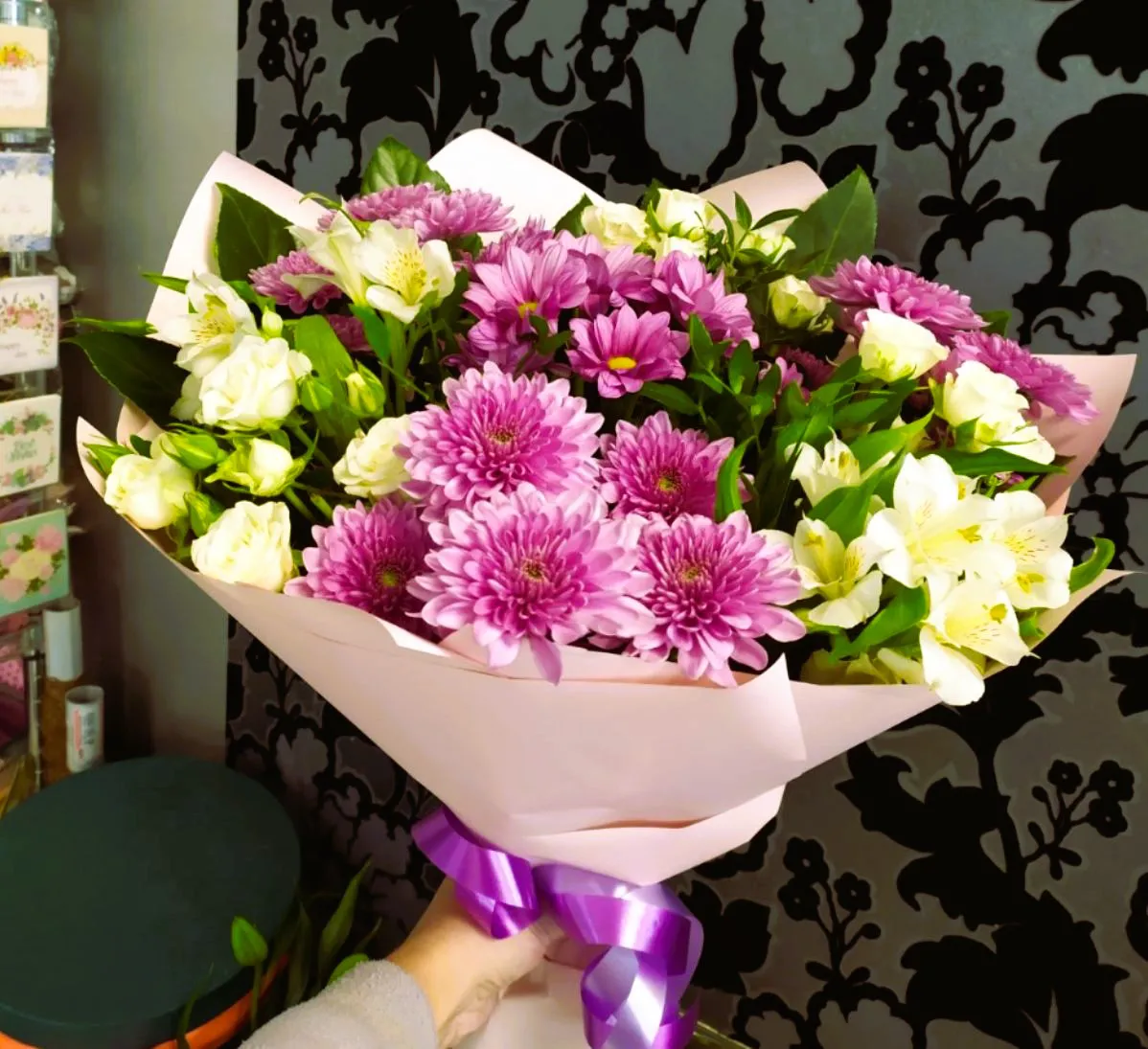 Собрав вместе кустовые розы, хризантемы и альстромерии, вы получаете не просто красивый букет, а настоящее произведение искусства, способное украсить любой праздник и подарить радость. Такой букет станет отличным способом выразить свои чувства и сделать момент незабываемым.